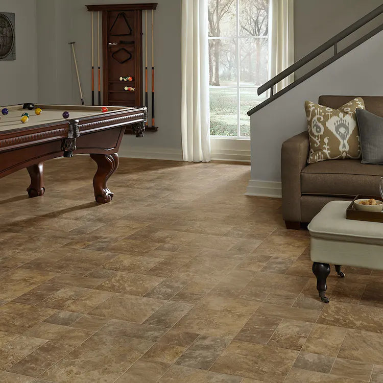 Rich in color and rugged in texture Landmark is a vinyl modular hand-set slate floor. Its modern and timeless appeal will keep any room looking current for years to come.